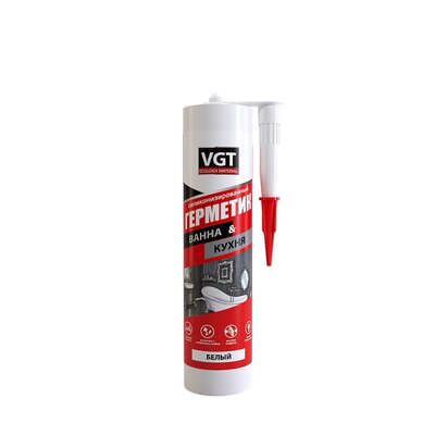 Герметик силиконизированный для нар/внутр работ для ванной и кухни белый 0.4 кг (12), VGT