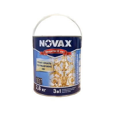 Эмаль-грунтовка по металлу NOVAX образует покрытие, крайне устойчивое к внешним воздействиям воды, масел, солей, а также агрессивных жидкостей и моющих средств.Может применяться и для внутренних, и для наружных работ.