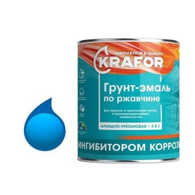 Грунт-эмаль алкидно-уретановая по ржавчине голубая 1,9 кг, KRAFOR