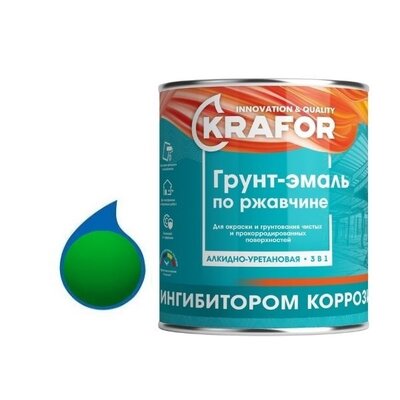 Грунт-эмаль алкидно-уретановая по ржавчине зеленая 1,9 кг, KRAFOR