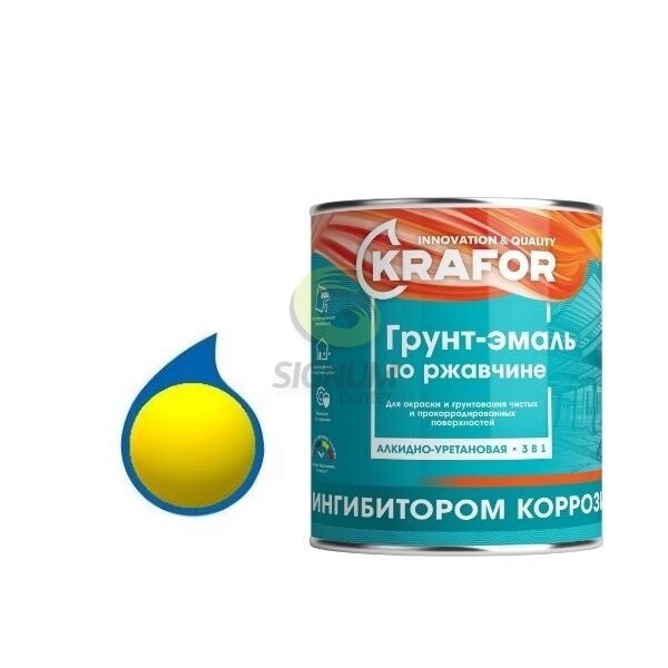 Грунт-эмаль алкидно-уретановая по ржавчине желтая 1,0 кг, KRAFOR
