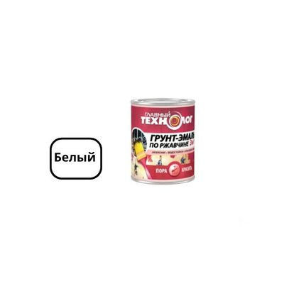 Грунт-эмаль по ржавч. латексная, 3 в 1, белая 0,8 кг (6), ГЛАВНЫЙ ТЕХНОЛОГ