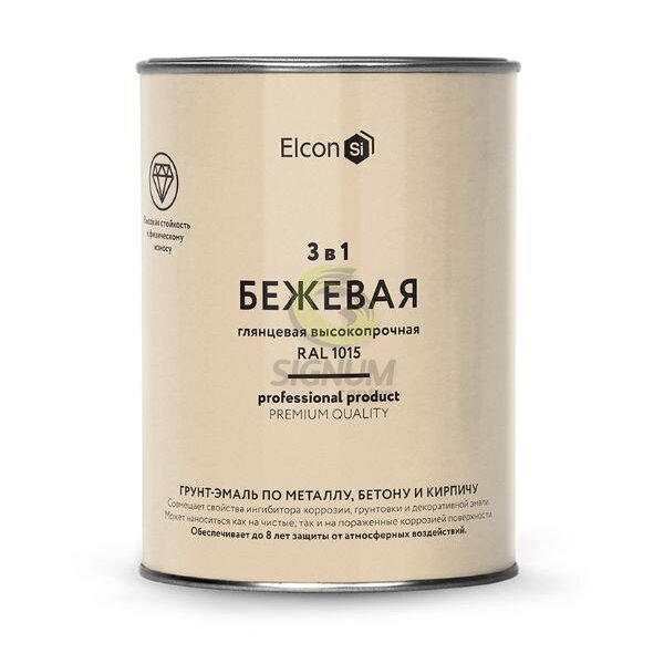 Грунт эмаль по ржавчине 3 в 1, глянцевая RAL 1015 бежевая, 0,8 кг, ELCON