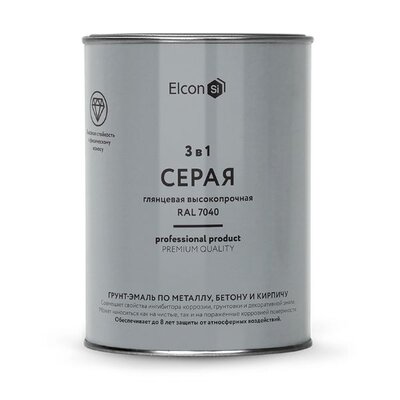 Грунт эмаль по ржавчине 3 в 1, глянцевая RAL 7040 серая, 0,8 кг, ELCON