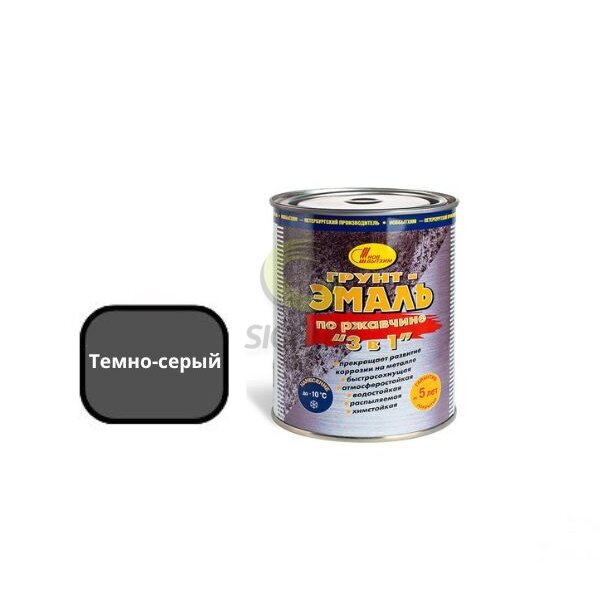 Грунт-эмаль по ржавчине 3 в 1,тёмно-серая RAL7024,банка 2,7л (6 шт), НОВБЫТХИМ