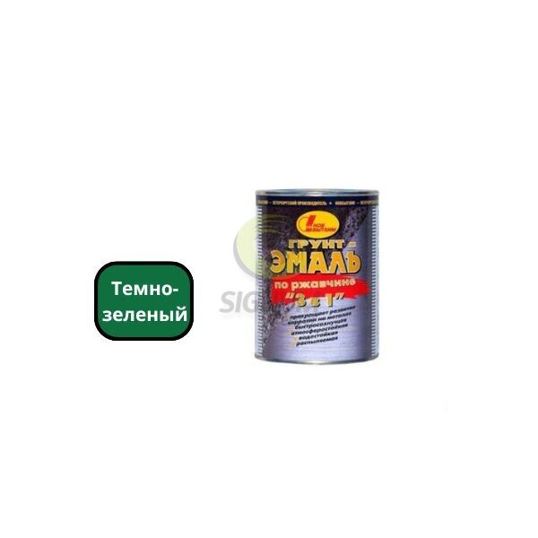 Грунт-эмаль по ржавчине 3 в 1,темно-зеленая RAL 6005, банка 1 л (12шт), НОВБЫТХИМ