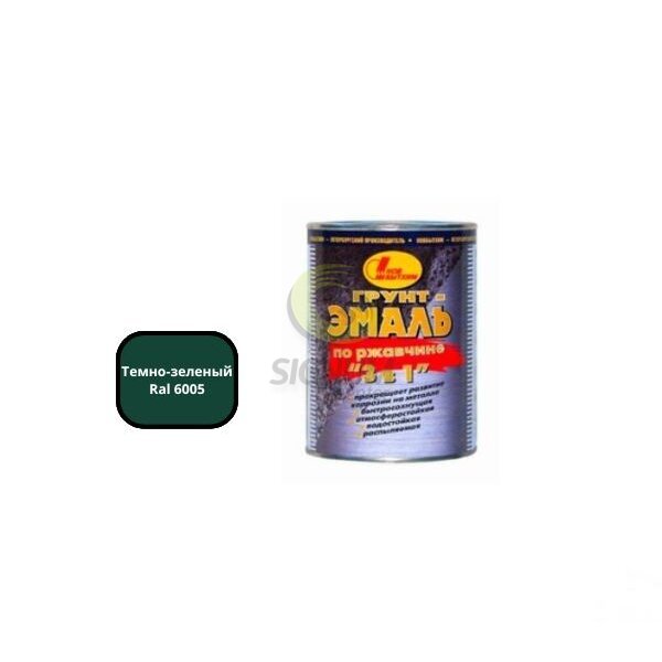 Грунт-эмаль по ржавчине 3 в 1,темно-зеленая RAL 6005, банка 2,7 л (6шт), НОВБЫТХИМ