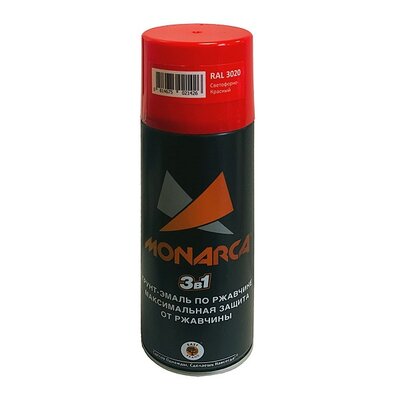 Грунт-эмаль по ржавчине аэрозольная 270г, RAL3020 Светофорно-Красный, MONARCA