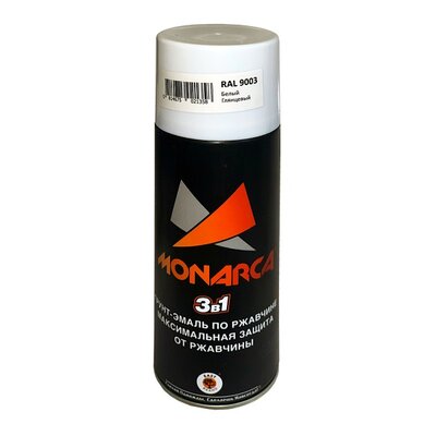 Грунт-эмаль по ржавчине аэрозольная 270г, RAL9003 Белый Глянцевый, MONARCA