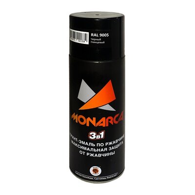 Грунт-эмаль по ржавчине аэрозольная 270г, RAL9005 Черный Глянцевый, MONARCA