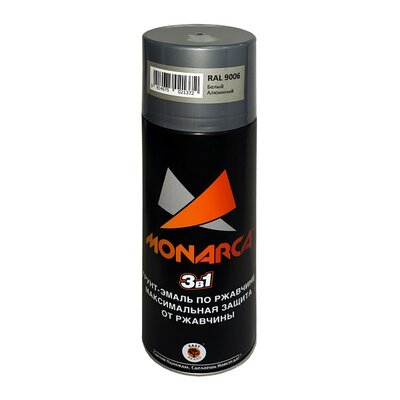 Грунт-эмаль по ржавчине аэрозольная 270г, RAL9006, Белый Алюминий, MONARCA