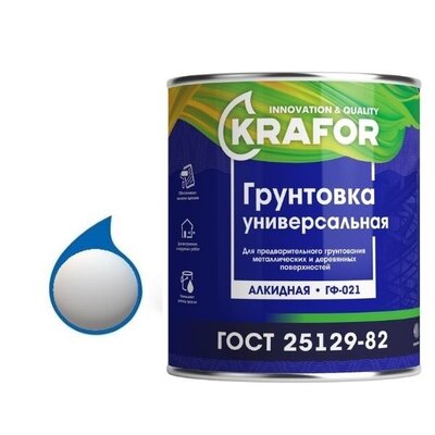 Грунтовка по дереву и металлу ГФ–021 KRAFOR изготовлена в соответствии с требованиями ГОСТ 25129–82.