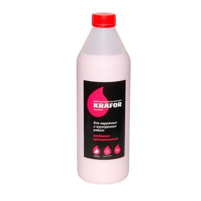 Грунтовка ВД для нар/внутр. работ акриловая глубокого проникновения 1л (красная эт.), KRAFOR