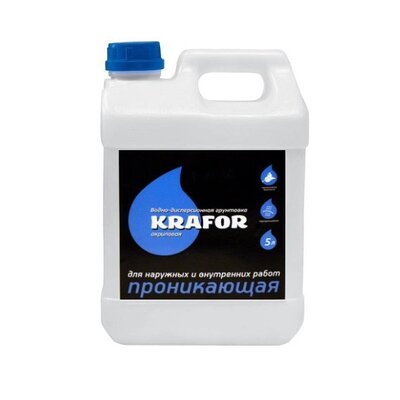 Грунтовка водно-дисперсионная для наружных и внутренних работ проникающая акриловая KRAFOR