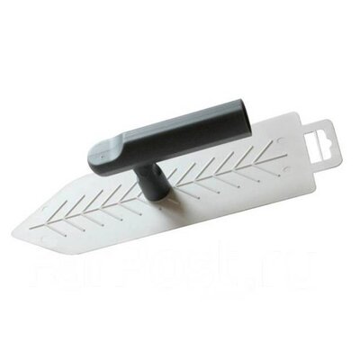 – размер 25x8 см, пластиковая кельма остроугольная с черной ручкой и закругленными краями