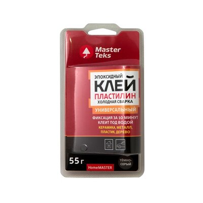 Клей-пластилин эпоксидный MasterTeks HomeMASTER холодная сварка УНИВЕРСАЛЬНЫЙ 0,55, темно-серый. Подходит для быстрого и надежного склеивания, ремонта деталей и узлов, герметизации соединений и емкостей, для восстановления утраченных фрагментов изделий из черных и цветных металлов,пластмасс,керамики,дерева в различных комбинациях.