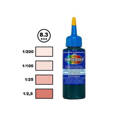 Оттенок и насыщенность краски могут несколько отличаться от представленных на карте цветов в зависимости от используемой краски и содержания в ней белого пигмента. Цвет и оттенок также могут быть составлены потребителем самостоятельно путем смешивания различных паст "Униколер" в любом соотношении.