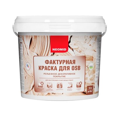 Краска декоративная эластичная фактурная для плит OSB, БЕЛЫЙ, 12 кг, NEOMID