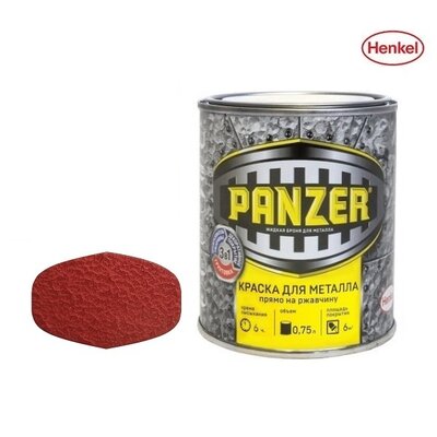 Краска для металла, молотковая, красная, 0,75 л, PANZER