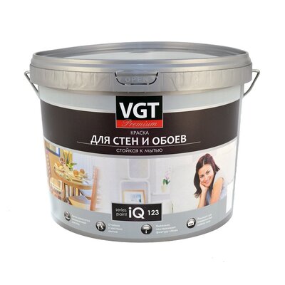 Краска для стен и обоев IQ 123 база А стойкая к мытью 9 л. (14 кг), VGT PREMIUM