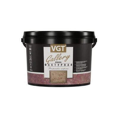 Краска представляет собой вязкую, грубодисперсную однородную массу. После высыхания краска образует декоративное рельефное покрытие глубиной до 3 мм, скрывающее мелкие дефекты стен. Отличается высокой твердостью, водо- и атмосферостойкостью, образует «дышащее» покрытие. Может колероваться колеровочными красками, пастами фирмы VGT или окрашиваться сверху.