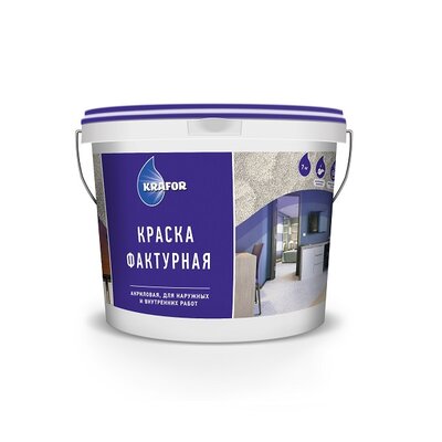 Фактурная Краска для наружных и внутренних работ водно-дисперсионная акриловая 7кг, KRAFOR