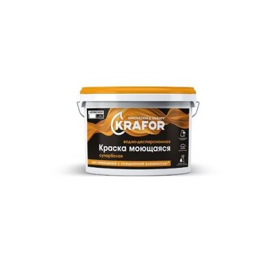 Краска интерьерная моющаяся супербелая водно-дисперсионная латексная KRAFOR