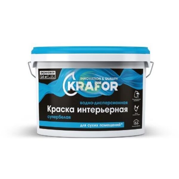 Краска интерьерная супербелая водно-дисперсионная акриловая 14 кг (голубая эт.), KRAFOR