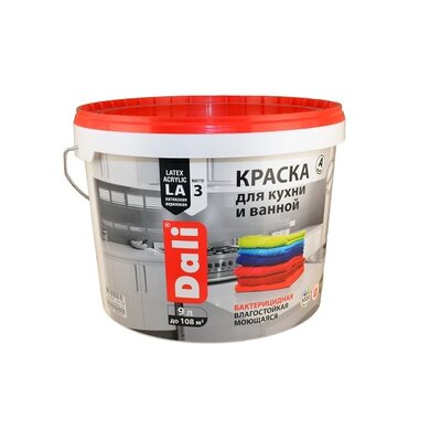 Краска латексная для кухни и ванной база А, 9 л, DALI