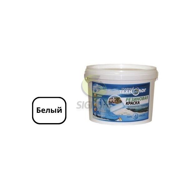 Краска резиновая, белая (база А) ведро 2,4 кг (4 шт), ГЛАВНЫЙ ТЕХНОЛОГ