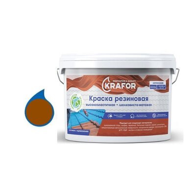Краска резиновая высокоэластичная для нар./внутр. работ, коричневый 6кг, KRAFOR