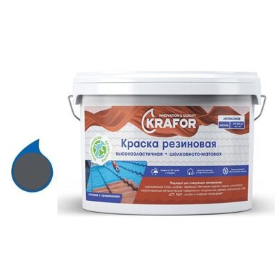 Краска резиновая высокоэластичная для нар./внутр. работ, серый графит 12кг, KRAFOR
