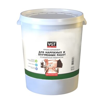 Краска ВД-АК –1180 для нар/внутр работ моющаяся "белоснежная" 25.0 кг, VGT