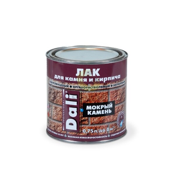 Лак для камня и кирпича "Мокрый камень" акриловый органорастворимый (0,75л), DALI