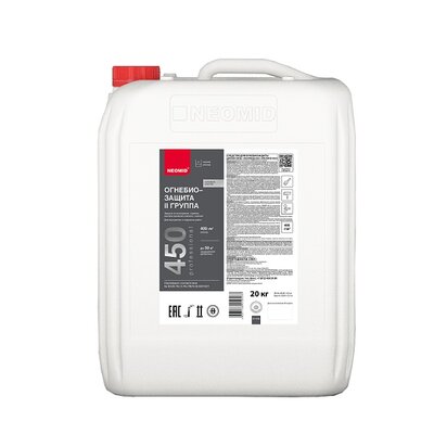 NEOMID 450 - высокоэффективный состав для огнезащиты и антисептирования древесины. Переводит древесину в трудновоспламеняемый и трудногорючий материал, обеспечивая II (вторую) группу огнезащитной эффективности согласно НПБ 251-98. Применяется для наружных и внутренних работ.