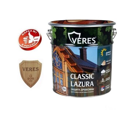 Полуматовая пропитка CLASSIC Lazura № 1 БЕСЦВЕТНЫЙ 10 Л (1), VERES