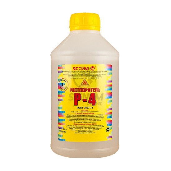 Растворитель Р-4 предназначен для разбавления лакокрасочных материалов на основе поливинилхлоридных хлорированных смол ПСХ ЛС и ПСХ ЛН, сополимеров винилхлорида, эпоксидных смол и других пленкообразующих веществ.
