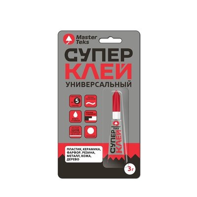 Супер-клей Masterteks – универсальный однокомпонентный цианакрилатный клей предназначен для моментального и надежного склеивания изделий из разнообразных материалов, включая пластик, керамику, фарфор, резину, металл, кожу, дерево и другие.