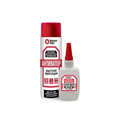 Супер-клей комплект для экспресс склеивания 400 мл+100 гр прозрачный MasterTeks