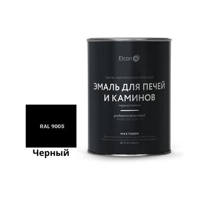 Эмаль термостойкая для печей и каминов черная 1200 градусов 0,8кг, ELCON