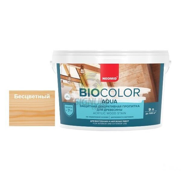 Защитный декоративный состав BiO COLOR Aqua для древесины Бесцветный 9 л, NEOMID