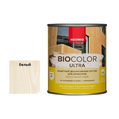Защитный декоративный состав BiO COLOR Ultra для древесины Белый 0,9 л, NEOMID