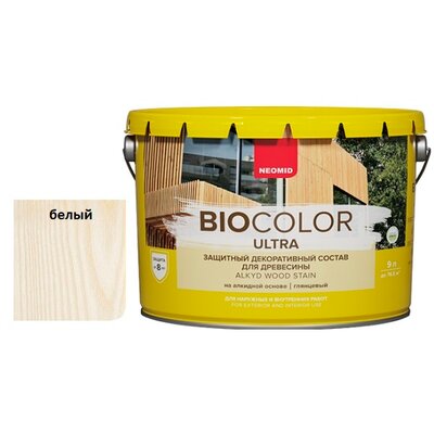 Защитный декоративный состав BiO COLOR Ultra для древесины Белый 9 л, NEOMID