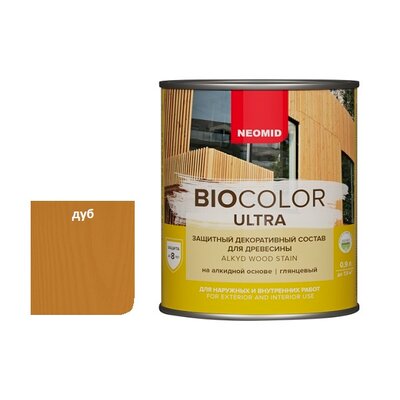 Защитный декоративный состав BiO COLOR Ultra для древесины Дуб 0,9 л, NEOMID